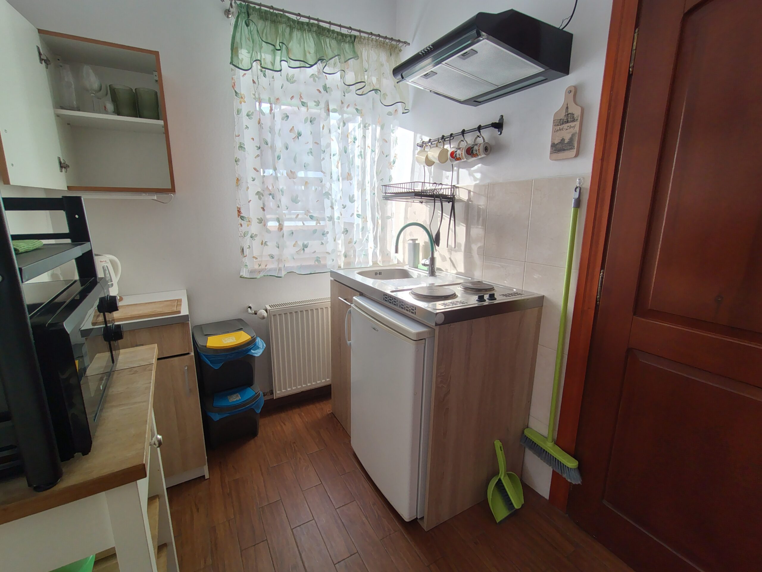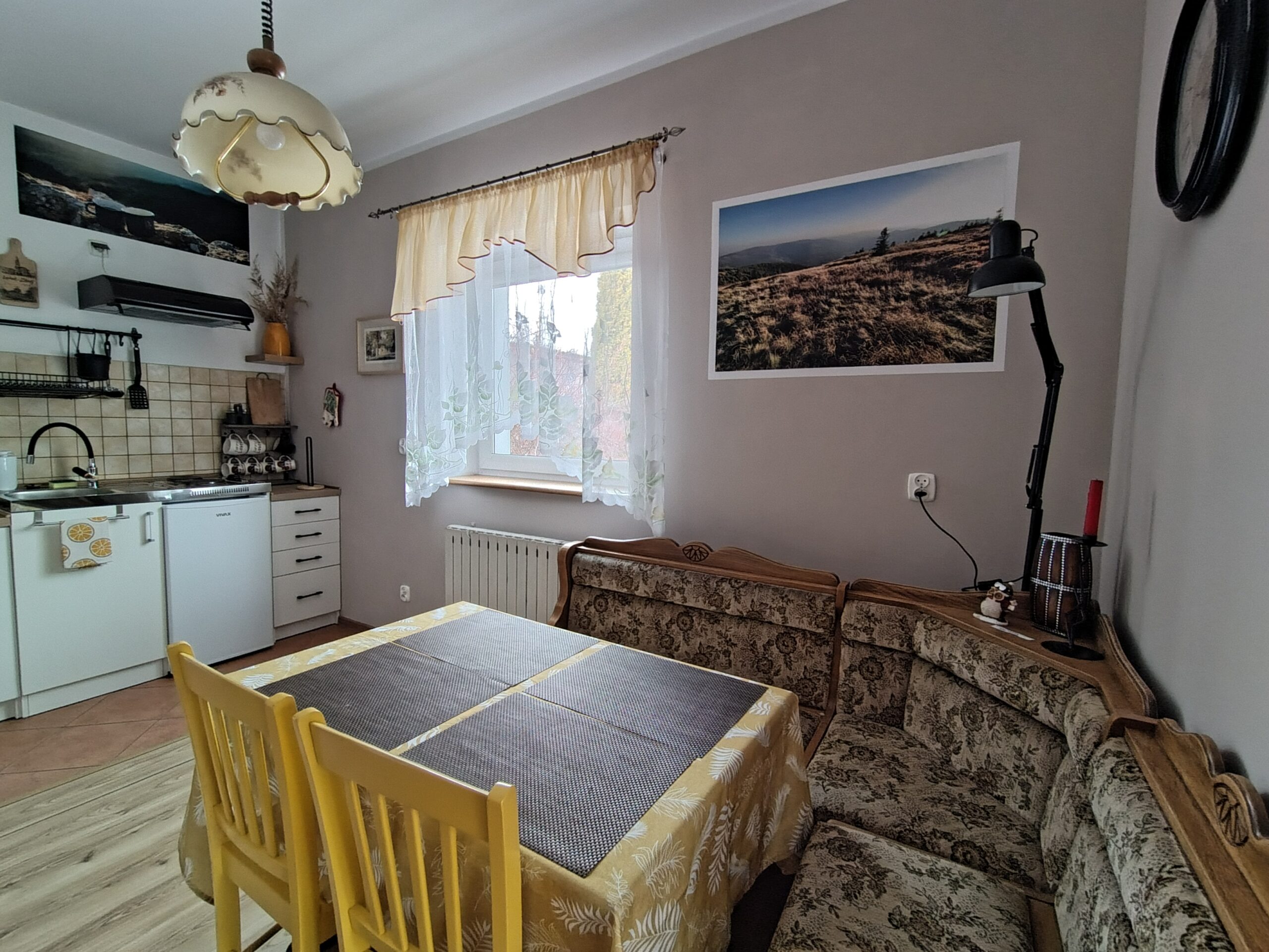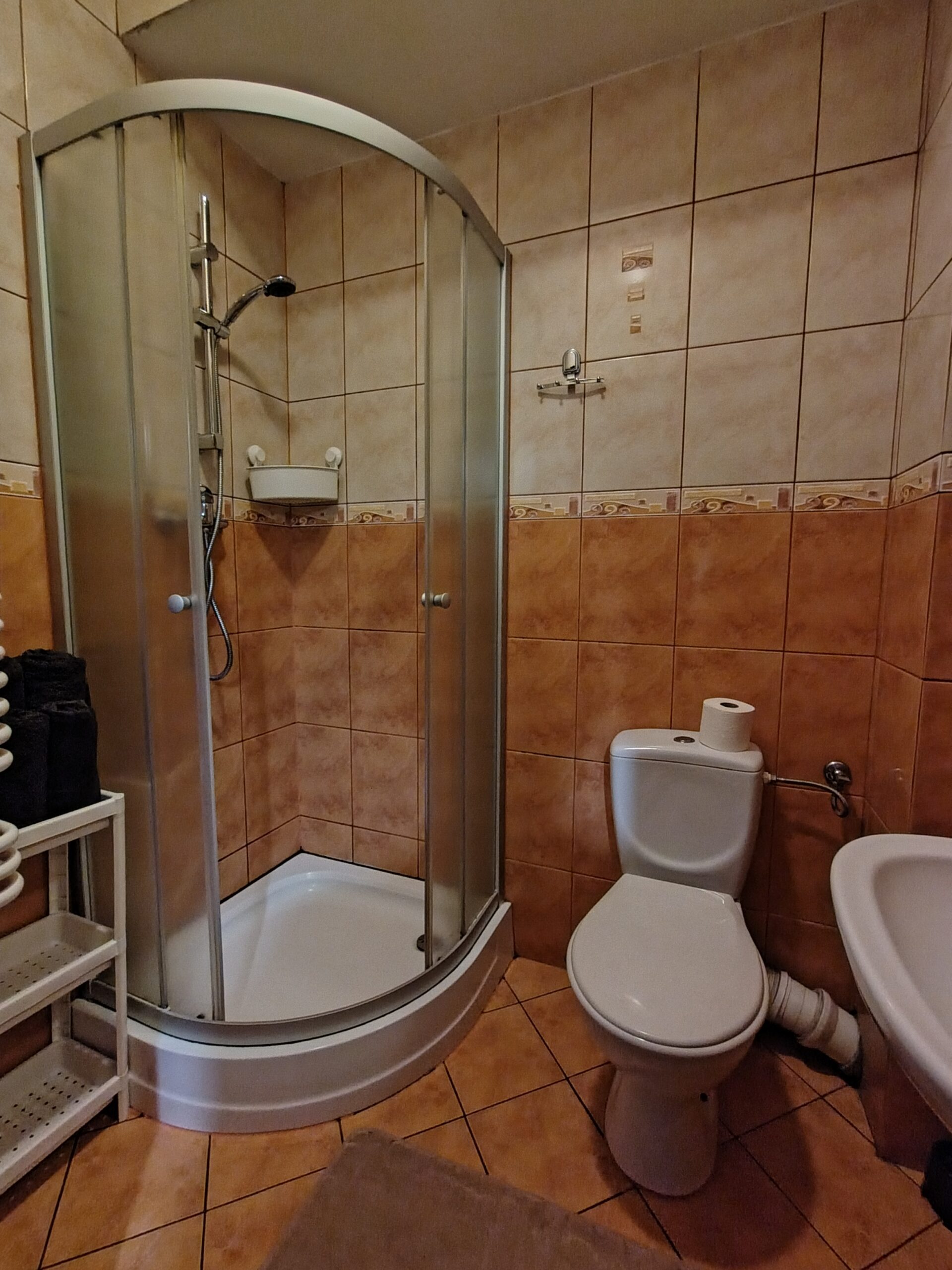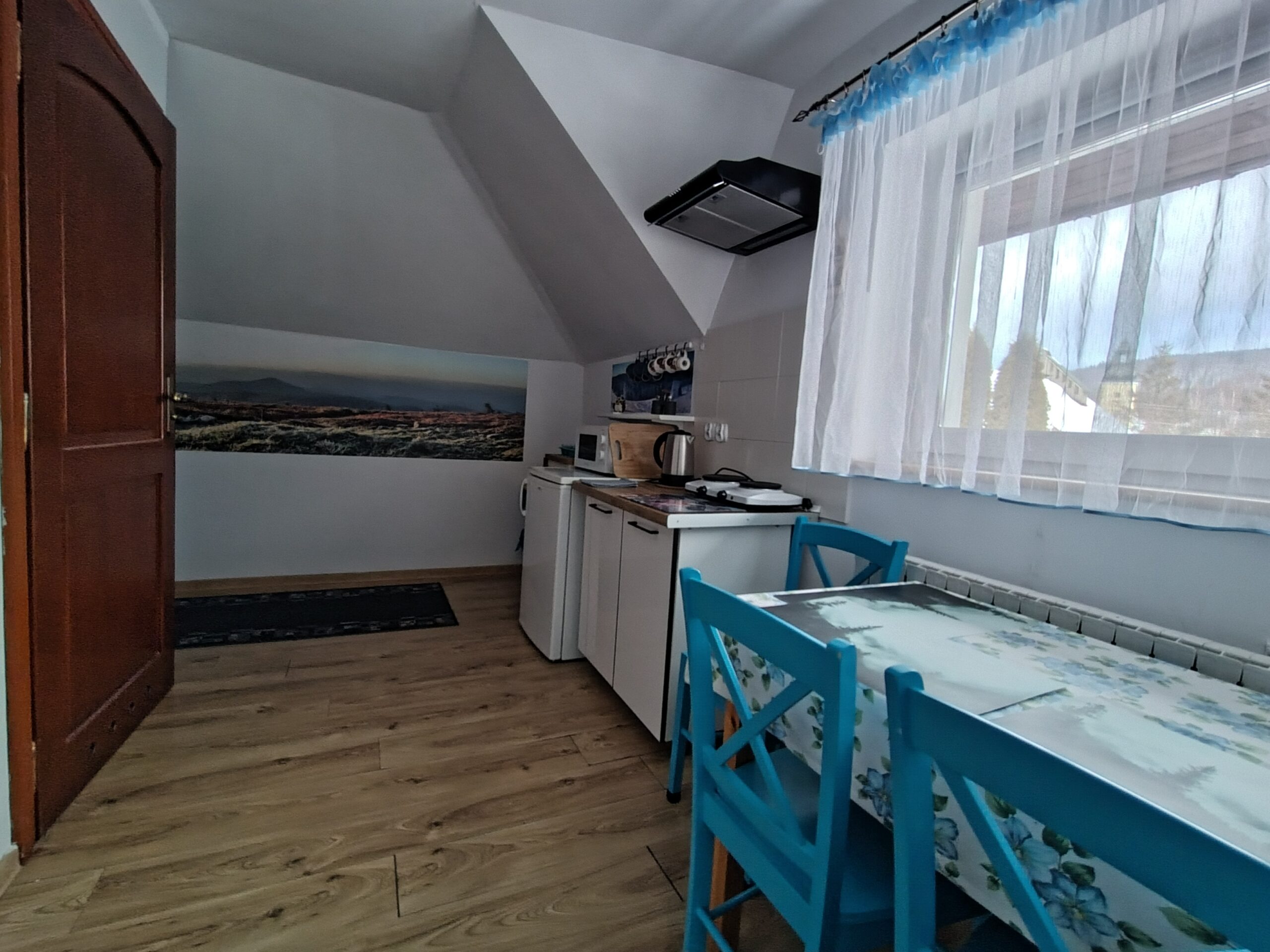 - kuchenka, lodówka, kuchenka mikrofalowa, czajnik elektryczny i naczynia