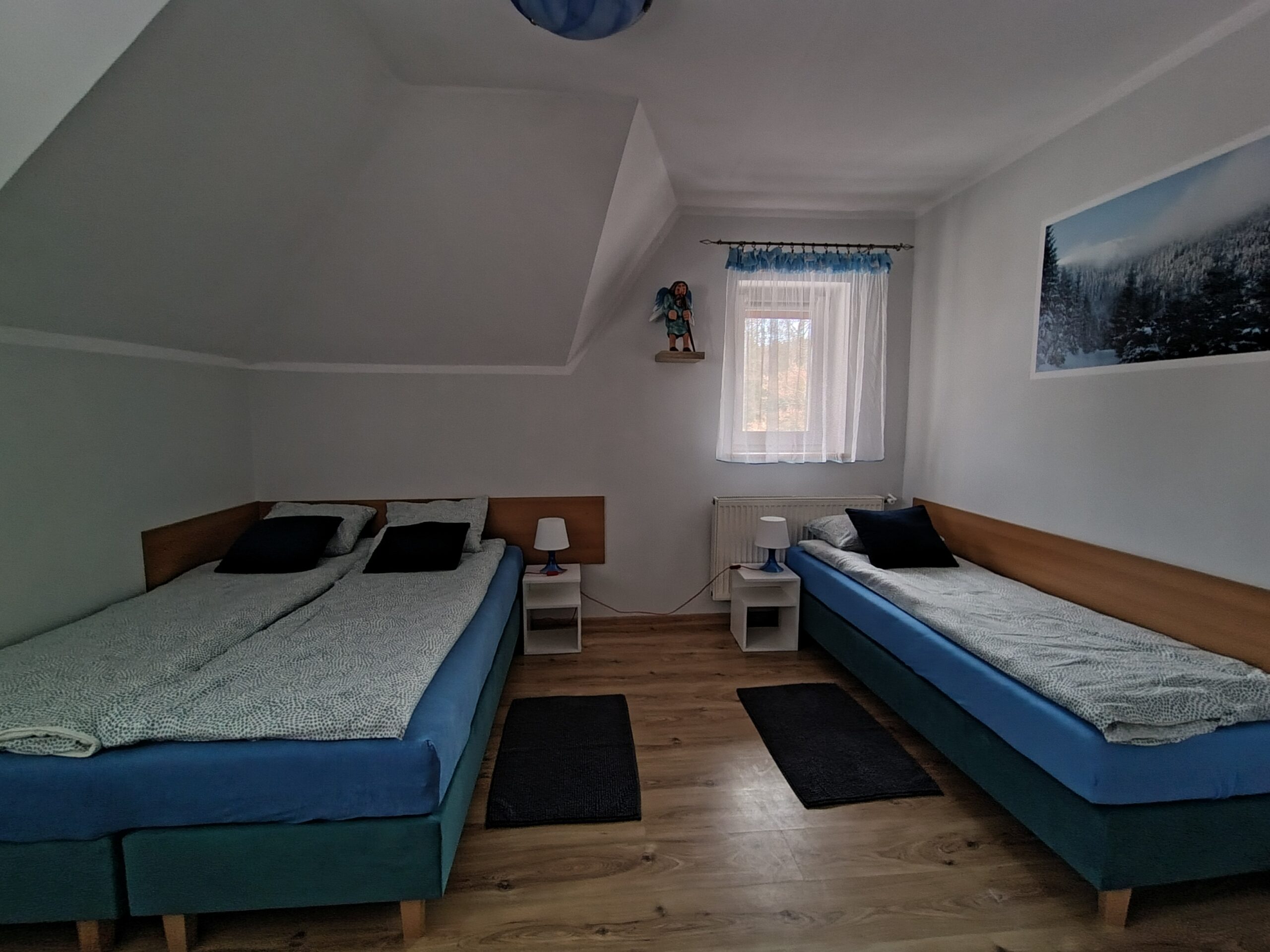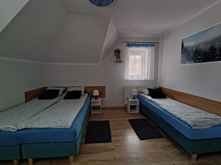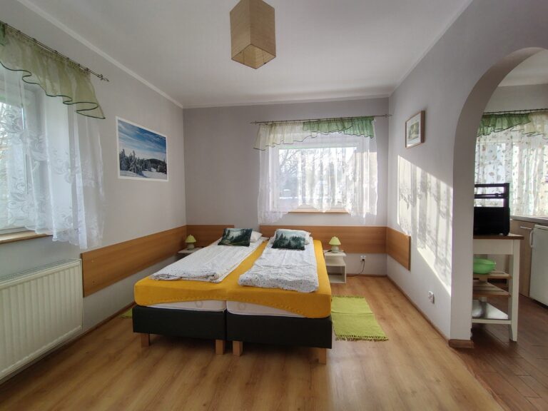 - 2 łóżka pojedyncze lub 1 małżeńskie lub 3 łóżka pojedyncze